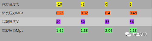 空調制熱時室內為冷凝器,冷凝溫度受風速和室內溫度的影響,空調設計低于28℃防冷風吹出保護,高于56℃過熱保護或降頻,所以室內最佳的冷凝溫度選取設計值也是50℃對應的壓力1.83MPa。