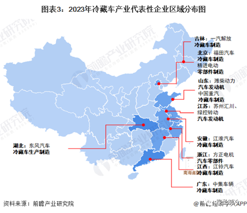 圖表3:2023年冷藏車產業代表性企業區域分布圖