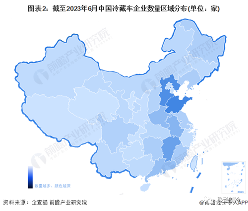 圖表2:截至2023年6月中國冷藏車企業(yè)數(shù)量區(qū)域分布(單位:家)