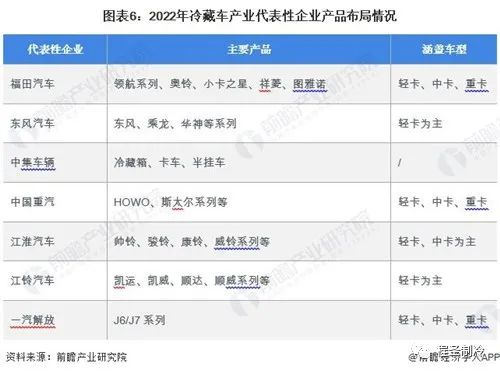 圖表6:2022年冷藏車產(chǎn)業(yè)代表性企業(yè)產(chǎn)品布局情況